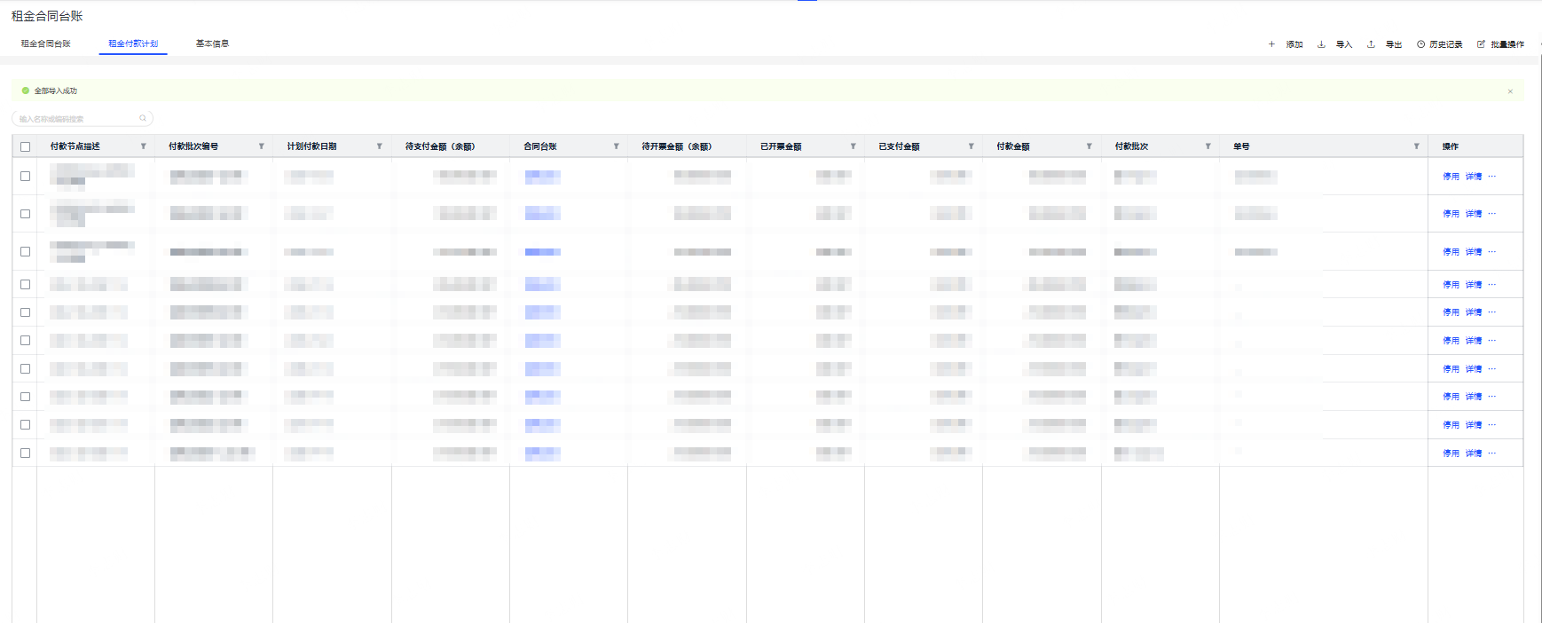 對于輕醫(yī)美行業(yè)普遍存在的分期合同管理難題,系統(tǒng)通過 “智能拆分 + 自動提醒” 機制實現(xiàn)精準管控。以進口設備采購合同為例,假設合同約定分 4 批支付 128 萬元貨款,系統(tǒng)會自動將每批付款金額、日期錄入臺賬,并關(guān)聯(lián)設備驗收單數(shù)據(jù) —— 當門店完成設備安裝調(diào)試后,系統(tǒng)自動標記 “首筆款可付”,避免提前付款風險;同時可設定在付款日期前 3 天,系統(tǒng)向地區(qū)總部財務及大連門店負責人推送雙重提醒,避免逾期付款的出現(xiàn)。
