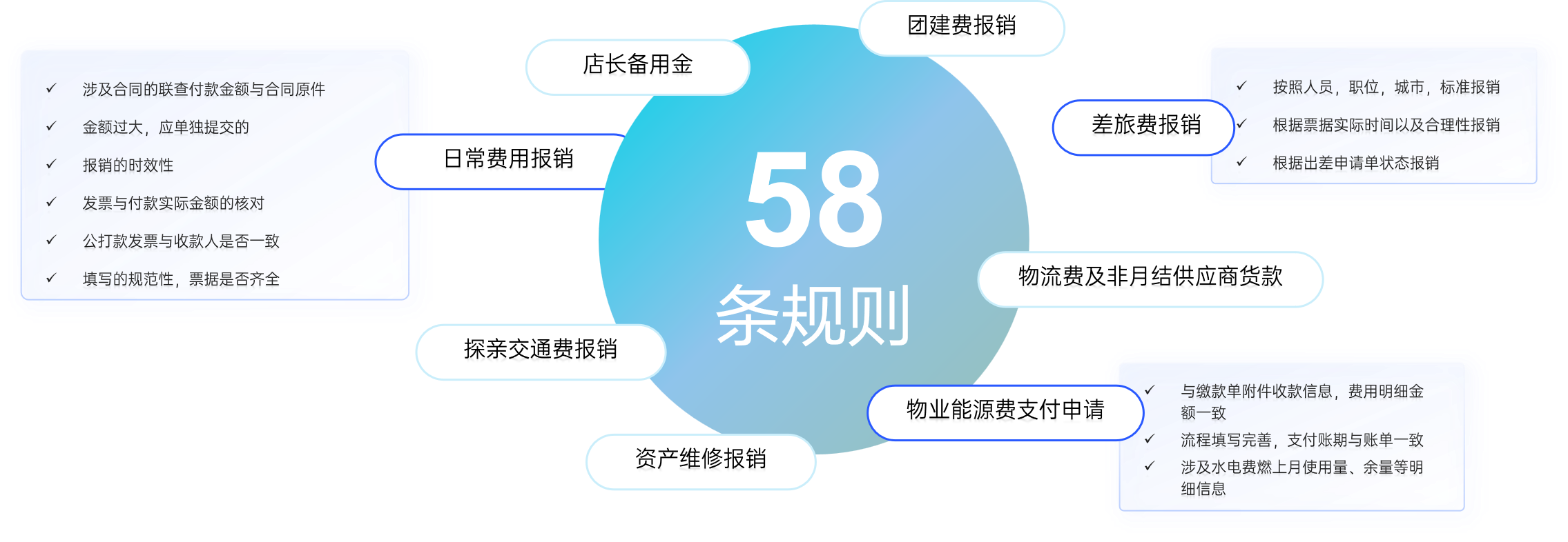結(jié)合云海肴 8 大核心費(fèi)用場(chǎng)景(差旅費(fèi)、物業(yè)能源費(fèi)、資產(chǎn)維修費(fèi)等),合思 AI 審批助手定制 58 條規(guī)則,將 20 余個(gè)審核點(diǎn)轉(zhuǎn)化為 AI 可執(zhí)行的判斷邏輯,避免人的主觀干擾,持續(xù)提升審批準(zhǔn)確率和合規(guī)深度。